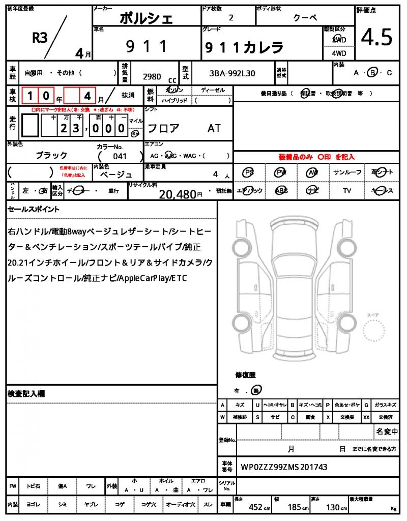 The sleek black 2021 Porsche 911 Coupe is a head-turner, with its powerful 2980cc engine roaring under the hood. This gasoline-powered ride features power steering and power windows for added convenience, as well as sleek aluminum wheels that catch the eye. As a used car export from Japan, this Porsche 911 is now available through AutoXGlobal for international buyers. Get ready to import this Japanese used car export and own a piece of high-performance driving heritage with the iconic Porsche 911.