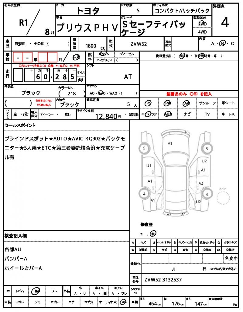 The 2019 Toyota Prius PHV is a sleek black hatchback that’s perfect for those looking for a fuel-efficient ride. Under the hood, you’ll find a 1800cc gasoline engine, paired with a 2WD drivetrain and featuring power steering for easy maneuverability. As a used car from Japan, this Prius PHV is available through AutoXGlobal for international buyers seeking a reliable and eco-friendly vehicle. With its aluminum wheels and power windows, this Japanese used car export is ready to hit the road for its new owner.