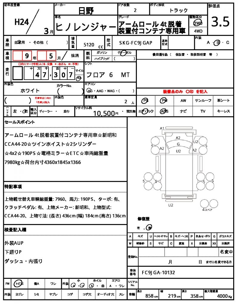 The 2012 HINO RANGER is a reliable workhorse, with a sleek white body that turns heads on the road. Under the hood, you’ll find a powerful 5120 cc diesel engine, paired with a 2WD drive system that makes it perfect for hauling and towing. This used car is available through AutoXGlobal for international buyers, offering a convenient and hassle-free way to bring this Japanese-made truck to your doorstep. Explore the possibilities with the HINO RANGER export from Japan, featuring power steering and power windows for added convenience. The Hino Hino Ranger is available for export from Japan through AutoXGlobal.