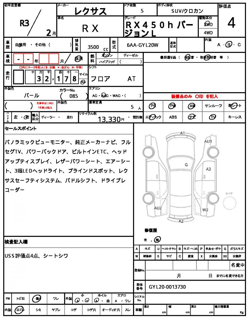 The 2021 LEXUS RX Pearl SUV is a stunning vehicle that boasts a powerful 3500cc gasoline engine and 2WD drive system, making it perfect for daily commutes and long road trips. With features like power steering and power windows, this SUV is designed for comfort and convenience. This is a used car from Japan, available for international buyers through AutoXGlobal. The LEXUS RX Pearl is a reliable and luxurious Japanese used car export that’s ready to hit the roads around the world.