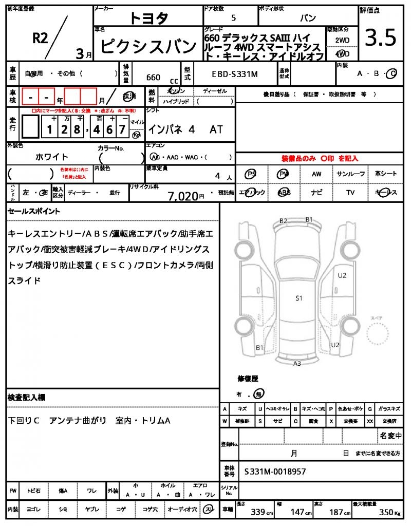 Meet the 2020 Toyota Pixis Van, a reliable and spacious minivan in crisp white. Under the hood, you’ll find a 660 cc engine fueled by gasoline, paired with a 4WD system for added traction. As a used car from Japan, this vehicle is available for international buyers through AutoXGlobal. For a hassle-free import, look no further than this Japanese used car export, the 2020 Toyota Pixis Van, complete with power steering and power windows.
