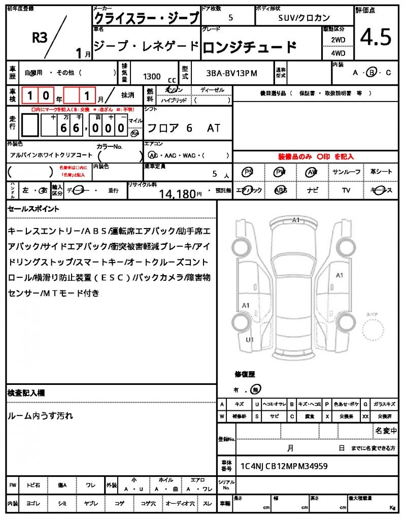 This stunning 2021 Chrysler Jeep Renegade is a white SUV that’s sure to turn heads. Under the hood, you’ll find a reliable 1300 cc engine that runs on gasoline and provides smooth power steering. As a 2WD vehicle, it’s perfect for navigating city streets or taking on light off-road adventures. Available through AutoXGlobal, this Japanese used car export is a great opportunity for international buyers to get behind the wheel of a quality Renegade. The Chrysler Jeep Jeep Renegade is available for export from Japan through AutoXGlobal.