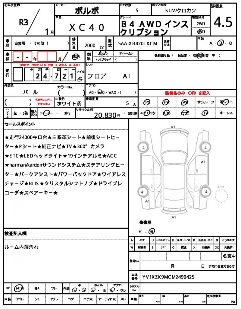 Meet the 2021 Volvo XC40, a sleek Pearl-colored SUV that turns heads on the road. Under the hood, you’ll find a 2000cc gasoline engine paired with a 4WD system, making it a great companion for any adventure. As a used car from Japan, this XC40 is now available for international buyers through AutoXGlobal. With its power steering and power windows, this Japanese used car export from AutoXGlobal is a great option for those looking for a reliable and feature-packed Volvo XC40.