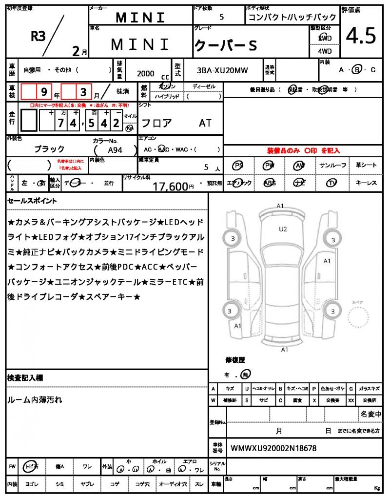 This sleek 2021 MINI MINI Hatchback is a stylish ride, finished in a glossy black that catches the eye. Under the hood, you’ll find a 2000cc engine firing on all cylinders, paired with a gasoline fuel system and 2WD drive. As you get behind the wheel, you’ll appreciate the convenience of power steering and power windows. Available through AutoXGlobal for international buyers, this used car export from Japan offers a unique opportunity to own a great MINI MINI Hatchback.