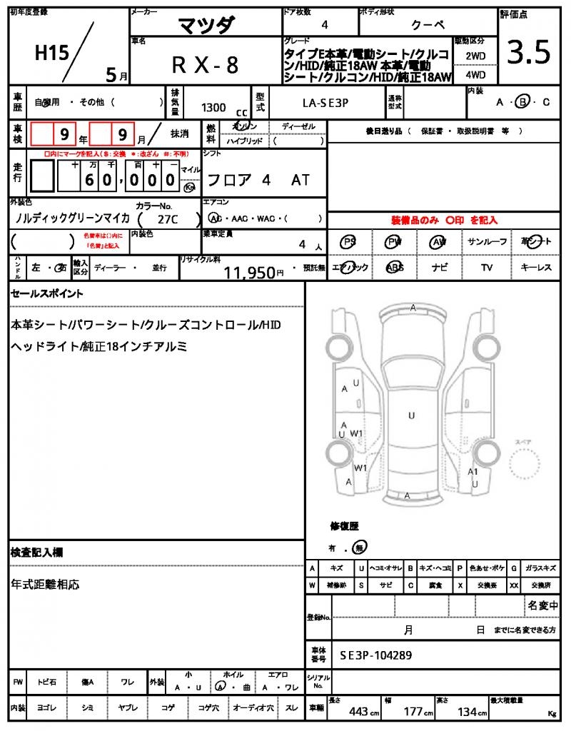 Meet the 2003 MAZDA RX-8 Coupe, a stylish ride with a vibrant green finish. Under the hood, you’ll find a 1300 cc gasoline engine, paired with 2WD and power steering to make navigating a breeze. As a used car from Japan, this vehicle is available for international buyers through AutoXGlobal. Whether you’re looking for a unique ride to cruise around town or a reliable commuter, the MAZDA RX-8 export from Japan is the perfect choice.