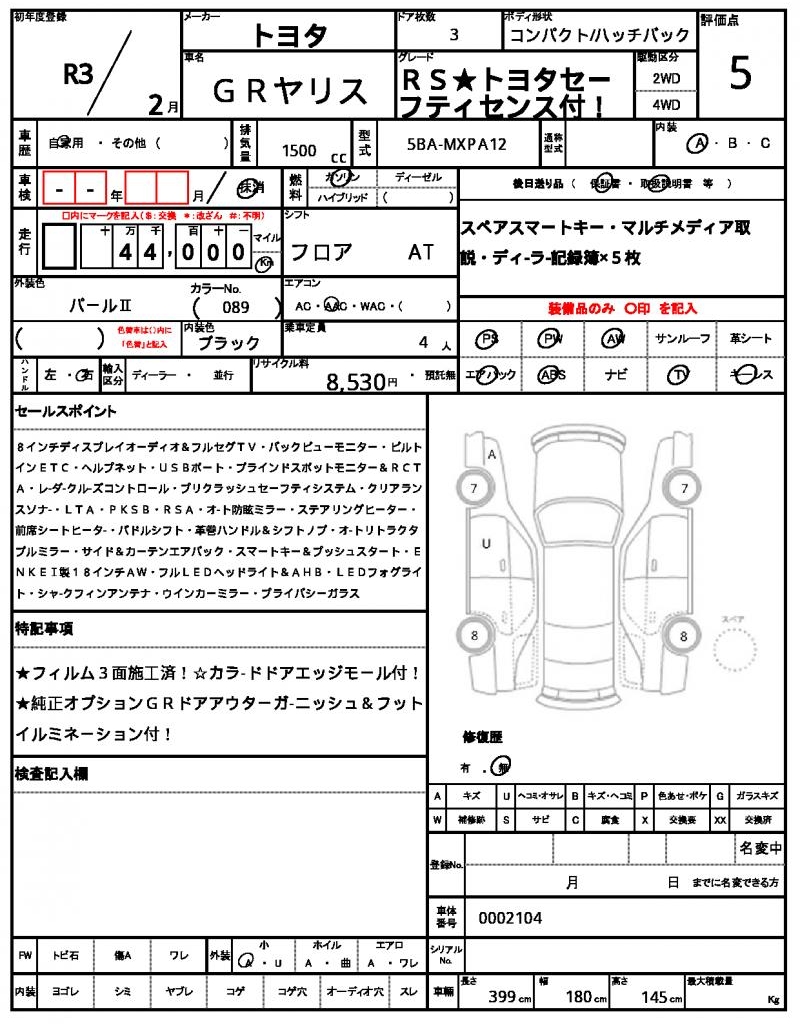 This stunning 2021 Toyota GR Yaris is a head-turning Pearl hatchback that’s sure to get your attention. Under the hood, you’ll find a reliable 1500cc gasoline engine paired with a 2WD drivetrain, making it perfect for daily commutes or weekend adventures. As a used car from Japan, we’re proud to offer this exceptional vehicle through AutoXGlobal to international buyers. Get ready to import this fantastic Toyota GR Yaris, a top-notch Japanese used car export, and experience the thrill of driving a high-performance hatchback.