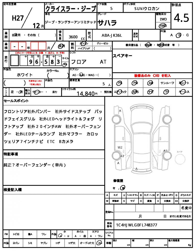 This 2015 Chrysler Jeep Wrangler Unlimited is a sleek white SUV that’s ready to hit the trails. Under the hood, you’ll find a 3600cc gasoline engine with four-wheel drive capability, making it perfect for adventure-seekers. As a used car from Japan, this vehicle is available through AutoXGlobal for international buyers. Don’t miss out on this opportunity to own a rugged and reliable 2015 Jeep Wrangler Unlimited export from Japan. The Chrysler Jeep Jeep Wrangler Unlimited is available for export from Japan through AutoXGlobal.