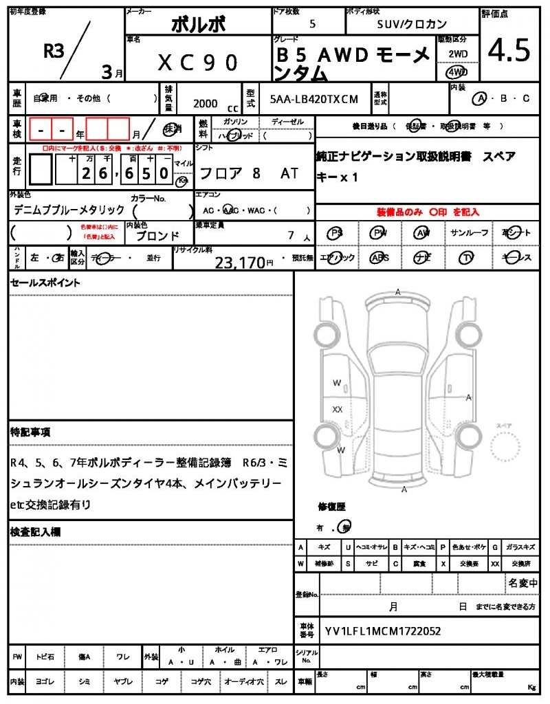 This 2021 VOLVO XC90 SUV boasts a stunning blue finish and is packed with features to make your driving experience smooth and enjoyable. Its 2000 cc hybrid engine combines power and efficiency, paired with a 4WD system for confident handling on any terrain, and comes equipped with convenient features like power steering and power windows. As a used car from Japan, this vehicle is available for international buyers through AutoXGlobal. Looking for a reliable Japanese used car export?