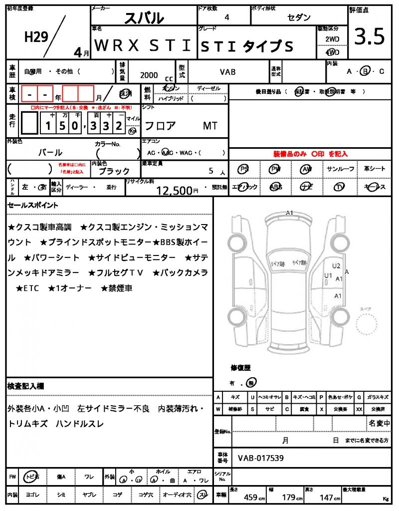 This stunning 2017 Subaru WRX STI Pearl sedan is a thrill to drive. Equipped with a 2000cc gasoline engine and 4WD system, it’s a performance machine with the added convenience of power steering and power windows. Available exclusively through AutoXGlobal, this used car is perfect for international buyers looking for a reliable ride. Get ready to experience the thrill of driving a used Subaru WRX STI, export from Japan, with its sleek Pearl finish and sporty aluminum wheels.