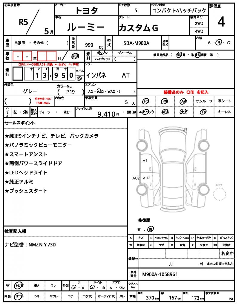 Meet the 2023 TOYOTA ROOMY, a reliable gray hatchback with a spacious interior and a 990cc gasoline engine providing a smooth ride. With power steering and power windows for added convenience, this TOYOTA ROOMY is a practical choice for daily driving. As a used car from Japan, this TOYOTA ROOMY is now available for international buyers through AutoXGlobal. For those looking for a reliable Japanese used car export, the 2023 TOYOTA ROOMY is a great option with its aluminum wheels and 2WD drive.