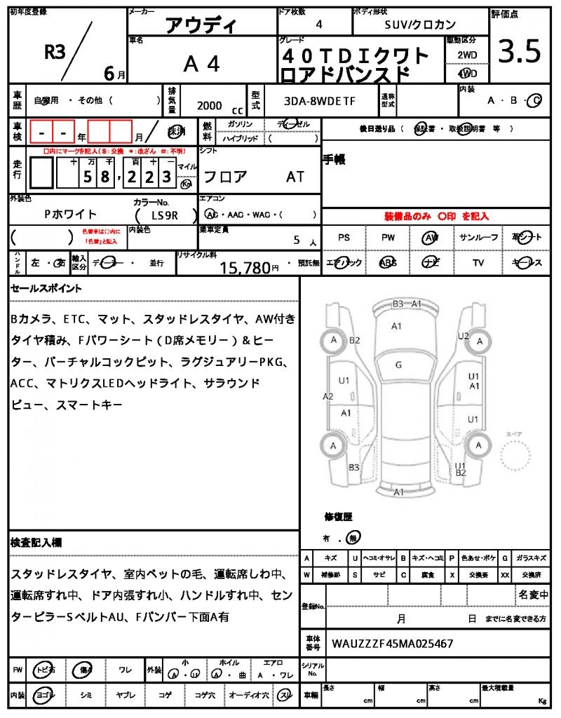 This stunning 2021 AUDI A4 Pearl SUV boasts a powerful 2000cc diesel engine, mated to a 4WD system for unparalleled traction and control. It also features aluminum wheels and a comprehensive car navigation system for easy route planning. As a used car from Japan, this exceptional vehicle is now available for international buyers through AutoXGlobal. For those seeking a reliable and feature-packed ride, the used AUDI A4 export from Japan is a fantastic choice.