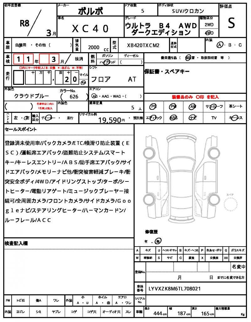 Meet the 2026 VOLVO XC40, a sleek blue SUV that’s ready to hit the roads. Under the hood, you’ll find a powerful 2000cc hybrid engine paired with a 4WD system, making it perfect for navigating any terrain. As a used car from Japan, this VOLVO XC40 is now available for international buyers through AutoXGlobal. If you’re looking for a reliable and feature-packed ride, look no further than this Japanese used car export, the 2026 VOLVO XC40.