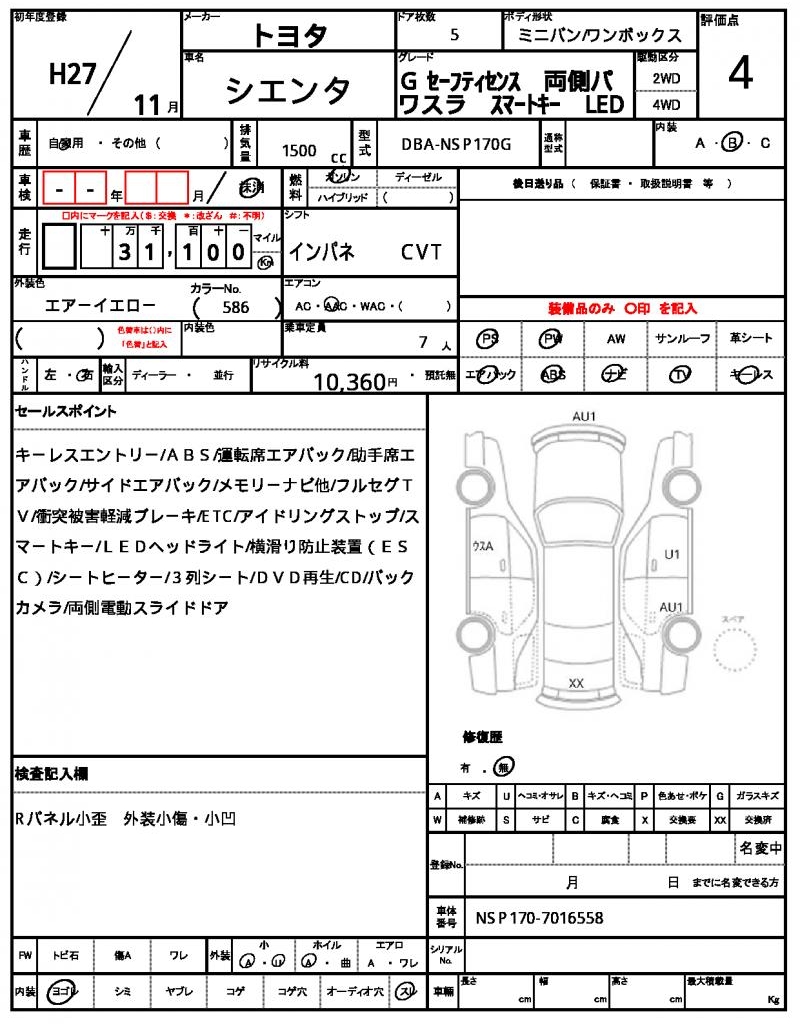 This bright yellow 2015 Toyota Sienta minivan is a reliable and spacious option for families or commuters. Under the hood, you’ll find a 1500cc gasoline engine paired with a 2WD drivetrain, making it easy to maneuver and fuel-efficient. As a used car from Japan, this Sienta is now available for international buyers through AutoXGlobal, providing a convenient and hassle-free exporting process. For those looking for a practical and feature-rich Japanese used car export, the Toyota Sienta is a great choice, offering power steering, power windows, and a driver’s airbag for added safety and convenience.