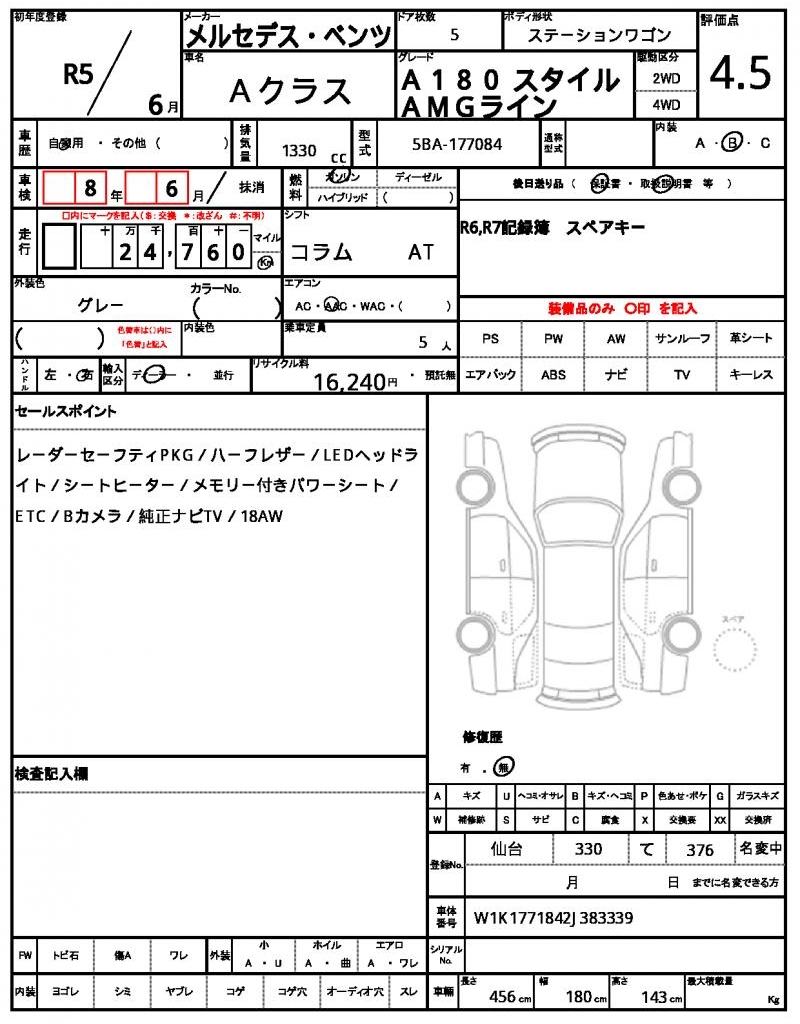 Meet this 2023 Mercedes-Benz A-Class Wagon, finished in sleek gray and packed with a reliable 1330cc gasoline engine, paired with 2WD for smooth handling. With maintenance log and record book included, you can rest assured this vehicle has been well cared for, and its accident-free history provides added peace of mind. As a used car from Japan, this A-Class Wagon is available for international buyers through AutoXGlobal. This Mercedes-Benz A-Class Wagon is a great find for those looking for a Japanese used car export, offering a unique blend of style, reliability, and performance. The Mercedes Benz A-Class is available for export from Japan through AutoXGlobal.