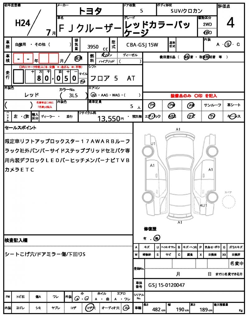 This 2012 TOYOTA FJ CRUISER is a bold red SUV that’s sure to turn heads on the road. Under the hood, you’ll find a powerful 3950cc gasoline engine paired with a 4WD system and features like power steering and power windows. As a used car from Japan, this vehicle is now available for international buyers through AutoXGlobal. If you’re looking for a reliable and rugged ride, the TOYOTA FJ CRUISER export from Japan is a great option to consider.