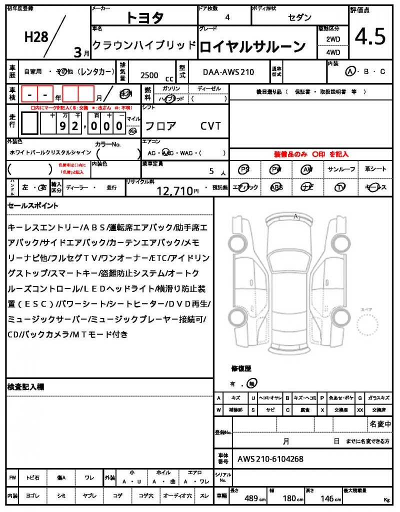 Meet this 2016 Toyota Crown Hybrid, a sleek white sedan that stands out from the crowd. Under the hood, you’ll find a reliable 2500cc engine paired with hybrid fuel, making for a smooth and efficient ride, complete with power steering and power windows. As a used car from Japan, this Crown Hybrid is available exclusively through AutoXGlobal for international buyers looking for a reliable and affordable ride. If you’re in the market for a Japanese used car export, look no further than this exceptional 2016 Toyota Crown Hybrid.
