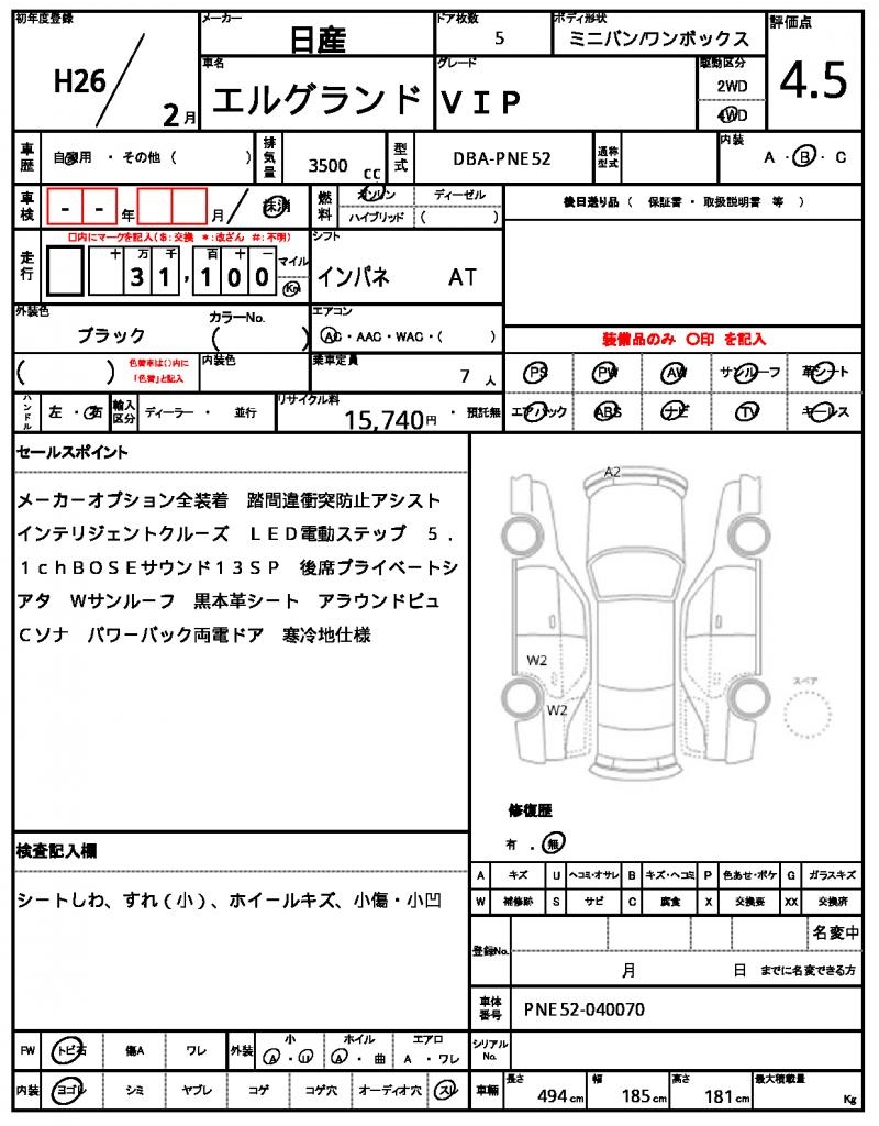 NISSAN | ELGRAND | 2014 | 3500 cc | ||||||||||||||||